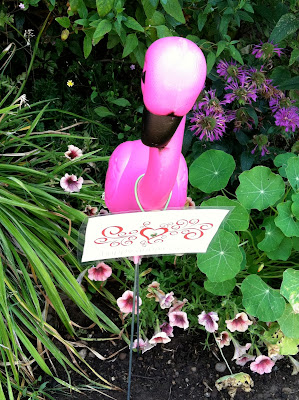 I walked out into my living room this morning and something pink caught my eye outside. I looked out the window to find our front yard covered with pink flamingos! We had been "FLOCKED"!