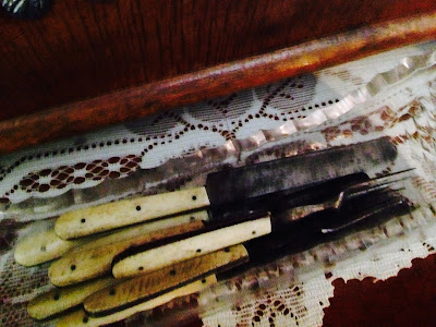 I absolutely LOVE dolly silverware. We found this set of 4 knives and 4 forks at a great antique mall. I don't know why I like it so, but I do!